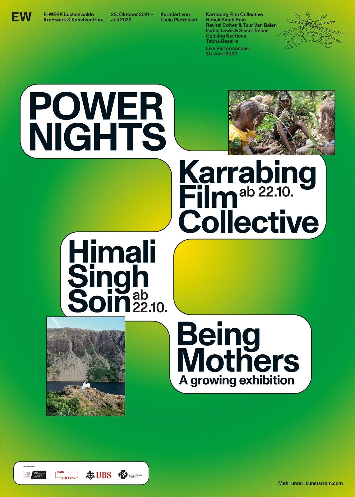 POWER NIGHTS: Being Mothers with Revital Cohen & Tuur Van Balen, Cooking Sections, Karrabing Film Collective, Isabel Lewis, Tabita Rezaire, Himali Singh Soin, Sissel Tolaas: 11 September 2021-May 2022